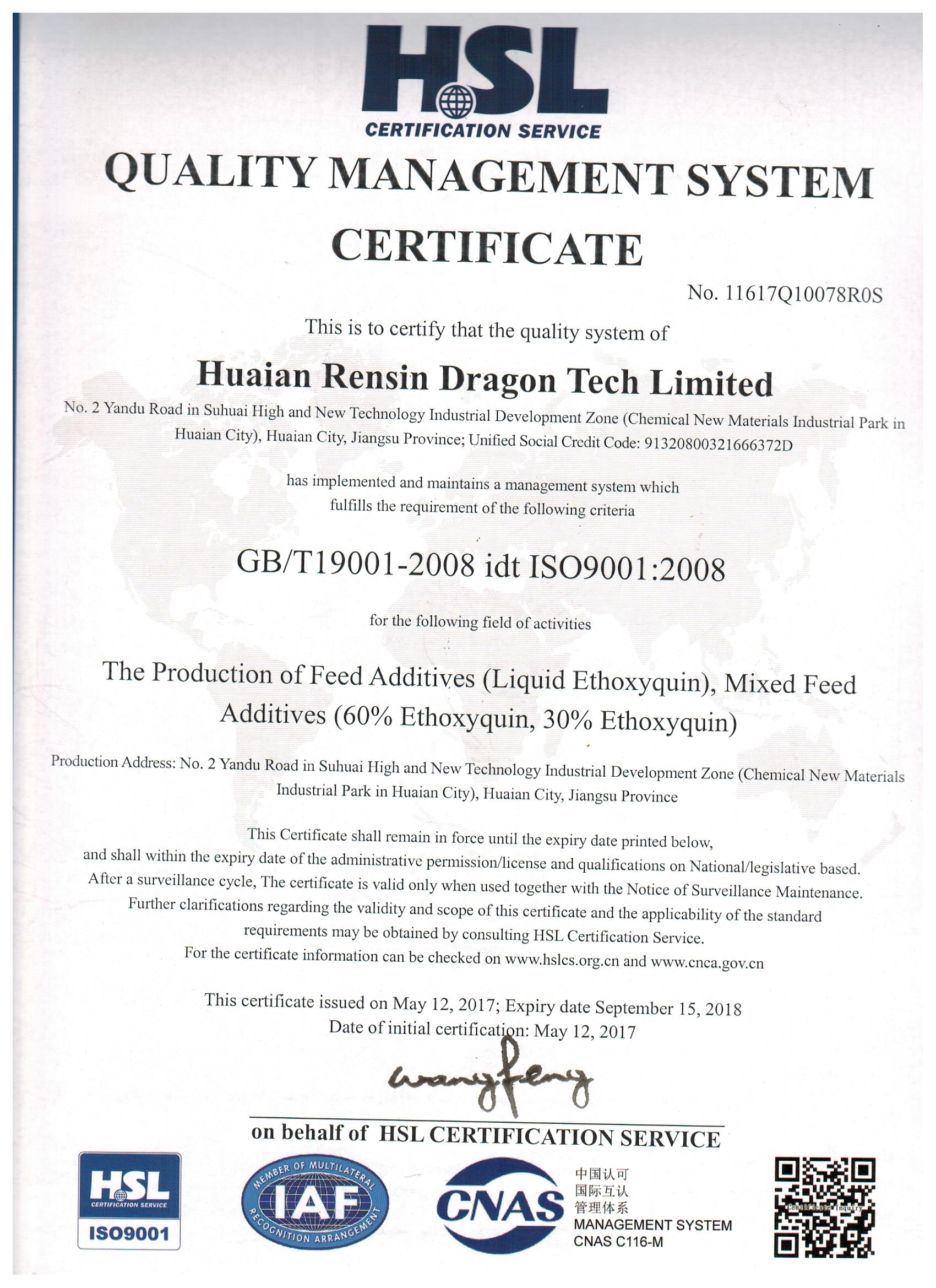 潤龍科技乙氧基喹啉自投產(chǎn)以來,生產(chǎn)穩(wěn)妥、安全、質(zhì)量可靠,生產(chǎn)理念堅持走全球一體化道路,所投產(chǎn)的產(chǎn)品全部基于國際質(zhì)量水平的技術(shù)基礎(chǔ)之上實施,主營產(chǎn)品“乙氧基喹啉”已家喻戶曉,暢銷亞洲、歐洲、南美洲、北美洲、大洋洲等30多個國家和地區(qū),年出口占比高達(dá)80%以上。同時,與國內(nèi)多家百強(qiáng)企業(yè)形成強(qiáng)力的合作關(guān)系。
